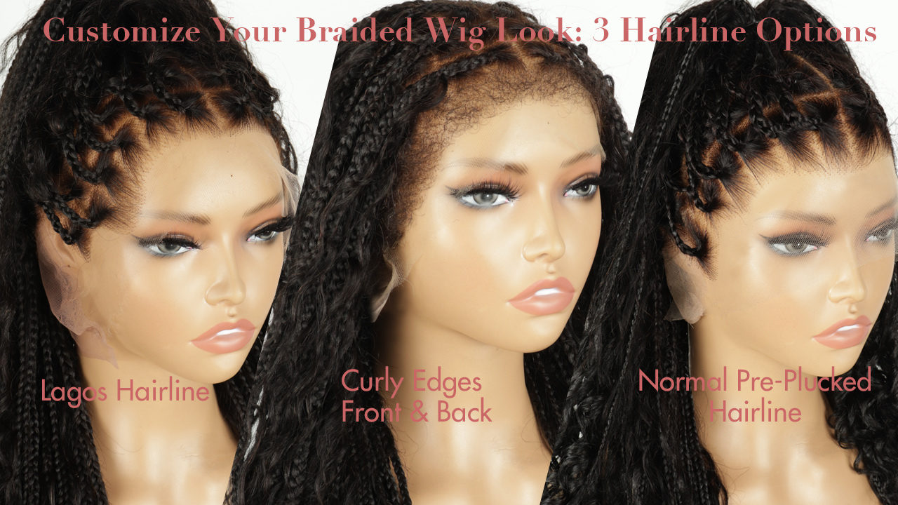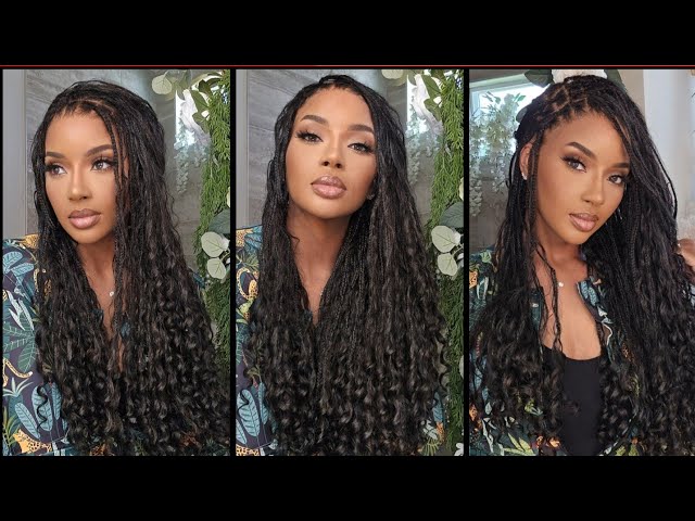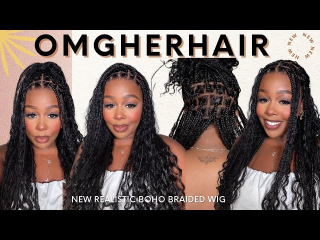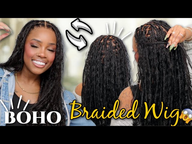 26" Boho Box Braided With Boho Curls Knotless Full Lace Wig With Invisible Drawstring [BHW01]
