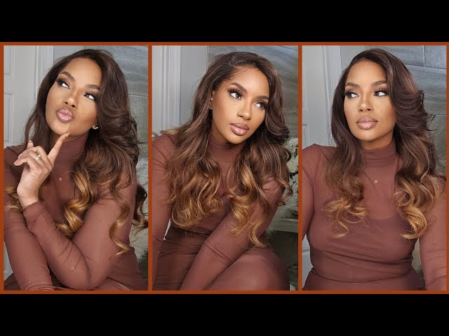 Invisible Drawstring Elegant Ombre Copper Brown Body Wave Fitted Glueless 360 HD Lace Wigs [HLW02]