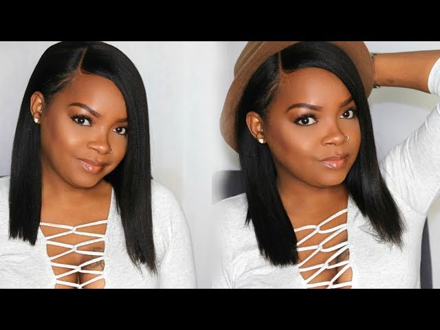 Pre-Plucked Relaxed Light Yaki Bob Style Lace Wig Brazilian Virgin Hair [BOB05]